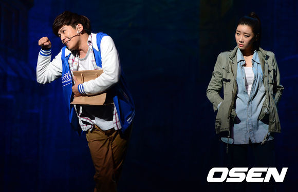2일 오후 서울 능동 유니버설아트센터에서 열린 뮤지컬 '남자가 사랑할 때' 프레스콜에서 가수 홍경민과 배우 한수연이 연기를 펼치고 있다.