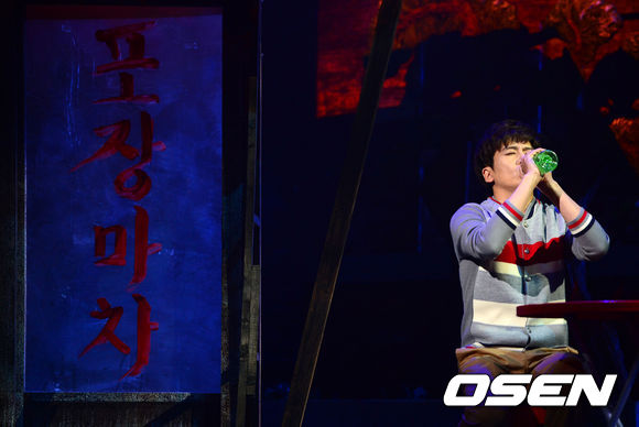 2일 오후 서울 능동 유니버설아트센터에서 열린 뮤지컬 '남자가 사랑할 때' 프레스콜에서 가수 홍경민이 연기를 펼치고 있다.