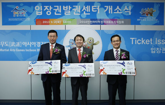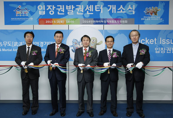2014 인천아시안게임조직위원회(위원장 김영수)가 2일 오후 2시 연수구 송도동 미추홀타워 1207호에 2013 인천실내&무도(武道)아시안게임 입장권 발권센터를 개소했다.