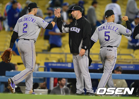 콜로라도는 2일 다저스타디움에서 열린 LA 다저스와의 경기에서 초반부터 타선이 힘을 낸 끝에 7-3으로 이겼다. 이로써 콜로라도는 다저스와의 3연전에서 2승1패를 기록하고 LA 원정을 마쳤다. 위닝 시리즈의 원동력은 역시 방망이였다. 콜로라도는 지난달 30일 12점을 뽑은 것을 비롯, 3경기에서 총 21점을 얻으며 화력을 과시했다./youngrae@osen.co.kr