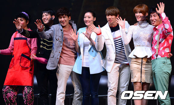 2일 오후 서울 능동 유니버설아트센터에서 열린 뮤지컬 '남자가 사랑할 때' 프레스콜에서 출연진이 기념촬영을 하고 있다.