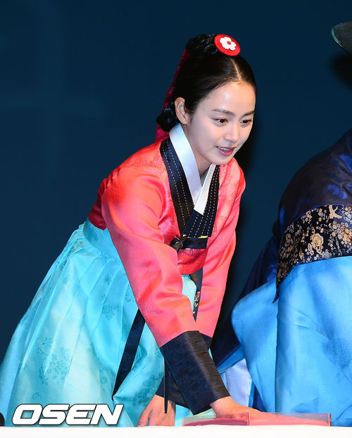 2일 오후 경기도 고양시 덕양구 고양 어울림누리 어울림극장에서 고양 지명 600돌을 맞아 ‘고양 600년 기념식’이 열렸다. 이 자리에서 김태희가 핸드프린팅 행사를 하고 있다.