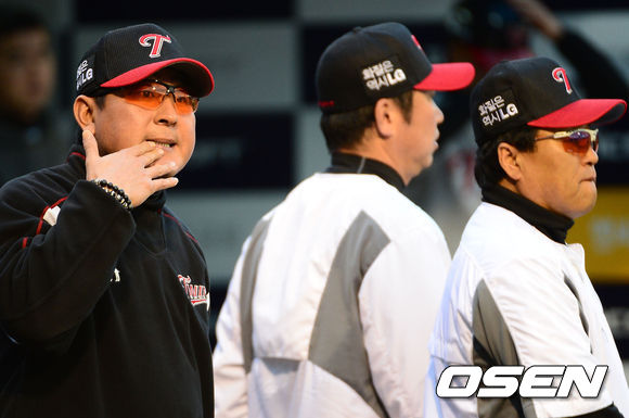 2일 오후 창원 마산구장에서 열린 NC 다이노스와 LG 트윈스의 경기, LG 김기태 감독이 경기를 준비하고 있다.