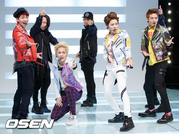 2일 오후 서울 상암동 CJ E&M에서 진행된 Mnet '엠카운트다운'(이하 엠카) 사전 녹화 무대에서 샤이니가 열창을 하며 화려한 안무를 선보이고 있다.