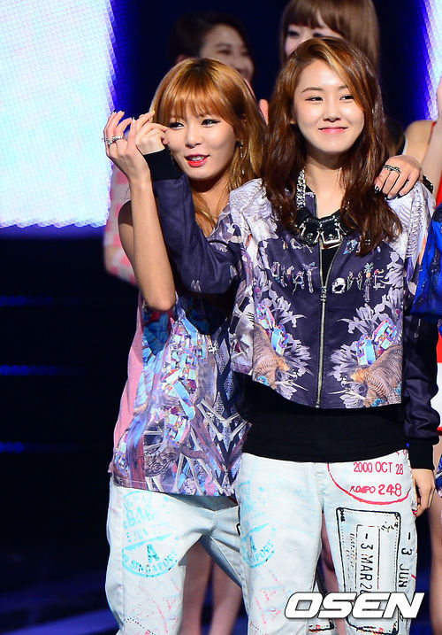 2일 오후 서울 상암동 CJ E&M에서 진행된 Mnet '엠카운트다운'(이하 엠카) 생방송에서 싸이의 '젠틀맨'이 1위가 되자 포미닛의 현아가 젠틀맨의 시건방춤을 추며 기뻐하고 있다.