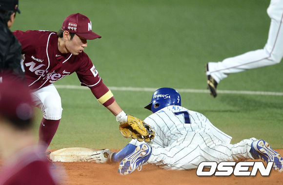 2일 오후 대구구장에서 열린 '2013 한국야쿠르트 세븐 프로야구' 삼성 라이온즈와 넥센 히어로즈의 경기 5회말 1사 1루 삼성 김상수가 2루 도루를 성공하고 있다.
