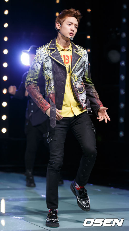 2일 오후 서울 상암동 CJ E&M에서 진행된 Mnet '엠카운트다운'(이하 엠카) 사전녹화 무대에서 샤이니의 민호가 열창을 하며 화려한 컴백무대를 선보이고 있다.