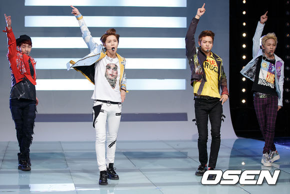 2일 오후 서울 상암동 CJ E&M에서 진행된 Mnet '엠카운트다운'(이하 엠카) 사전녹화 무대에서 샤이니가 열창을 하며 화려한 컴백무대를 선보이고 있다.