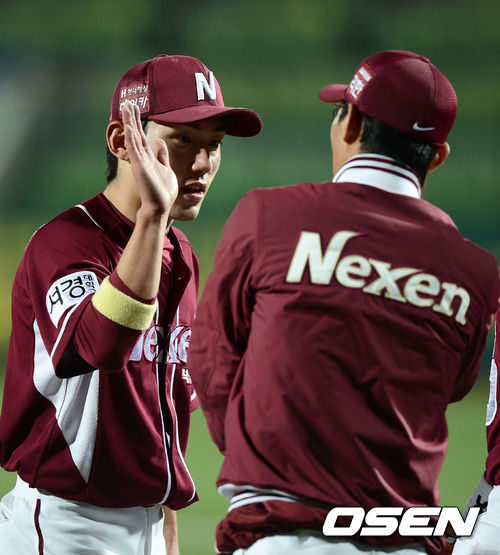 경기 종료 후 승리를 거둔 넥센 서건창이 염경엽 감독과 하이파이브를 하고 있다. / youngrae@osen.co.kr