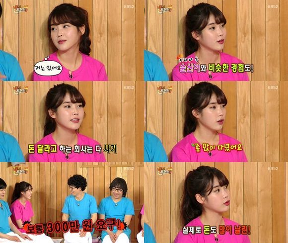 아이유는 2일 오후 방송된 KBS 2TV '해피투게더'에서 "기획사 사기를 많이 당한 적 있다"고 말했다.