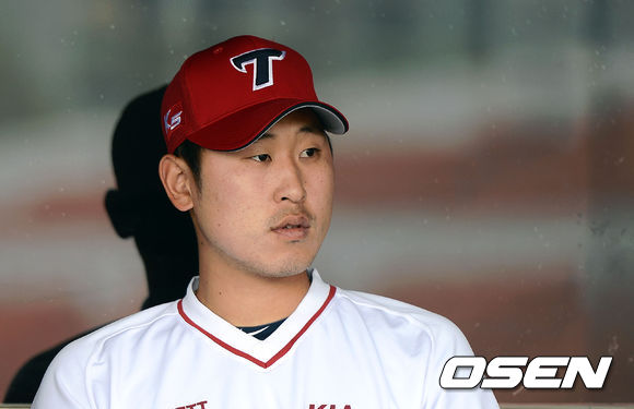 3일 오후 서울 목동구장에서 열리는 '2013 한국야쿠르트 세븐 프로야구' 넥센 히어로즈와 KIA 타이거즈의 경기에 앞서 KIA 윤석민이 벤치에 앉아 그라운드를 바라보고 있다.