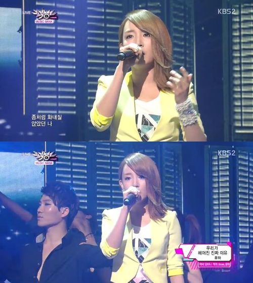 윤하는 3일 오후 6시 10분 방송된 KBS 2TV '뮤직뱅크'에 출연해 신곡 '우리가 헤어진 진짜 이유'를 열창했다.
