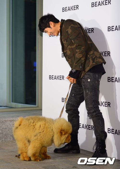 3일 오후 서울 청담동에서 열린 '비이커' 청담 플래그십 스토어'프라이데이 나잇 피버' 이벤트에서 2AM 임슬옹이 볼일보는 강아지를 바라보고 있다