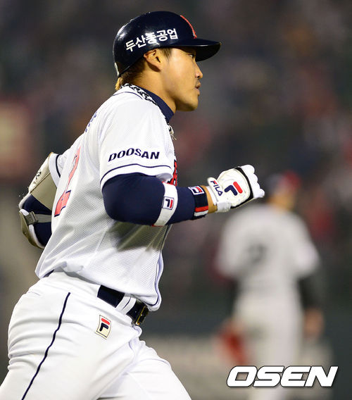3일 오후 서울 잠실야구장에서 열린 2013 한국야쿠르트 세븐프로야구 두산 베어스와 LG 트윈스의 경기, 4회말 무사에서 두산 홍성흔이 좌월 솔로 홈런을 치고 그라운드를 달리고 있다.