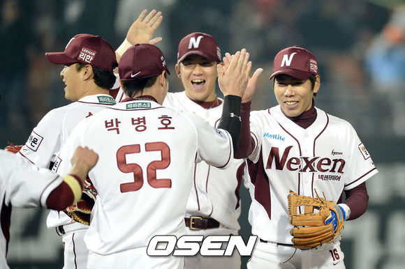경기 종료 후 승리를 거둔 넥센 선수들이 기뻐하고 있다. / youngrae@osen.co.kr