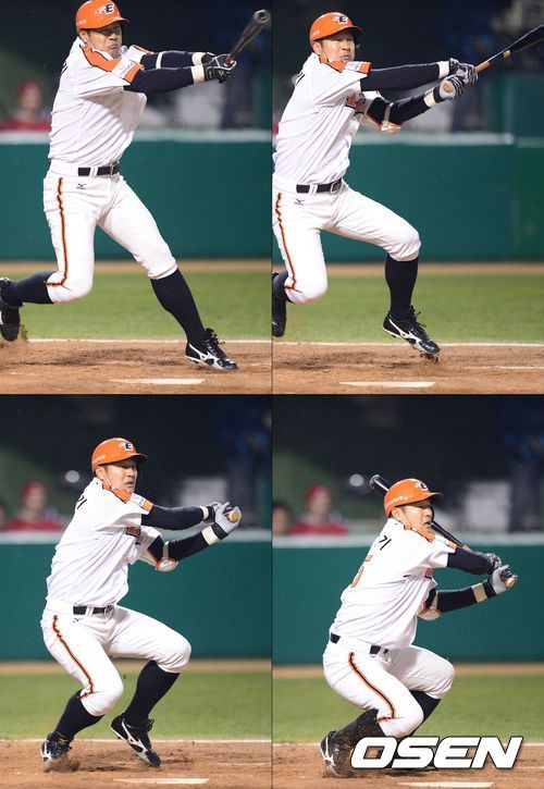 4회 두 번째 타석에서 이날 경기의 백미 '개구리 타법'을 선보였다. 선두타자 오선진의 볼넷으로 잡은 무사 1루. 한화 벤치는 치고 달리기 작전을 걸었다. 1루 주자 오선진이 스타트 끊은 가운데 레이예스의 초구 직구가 바깥쪽 높은 코스로 들어왔다.