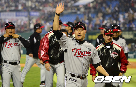 경기 종료 후 LG 봉중근이 관중석을 향해 인사를 하고 있다. /sunday@osen.co.kr