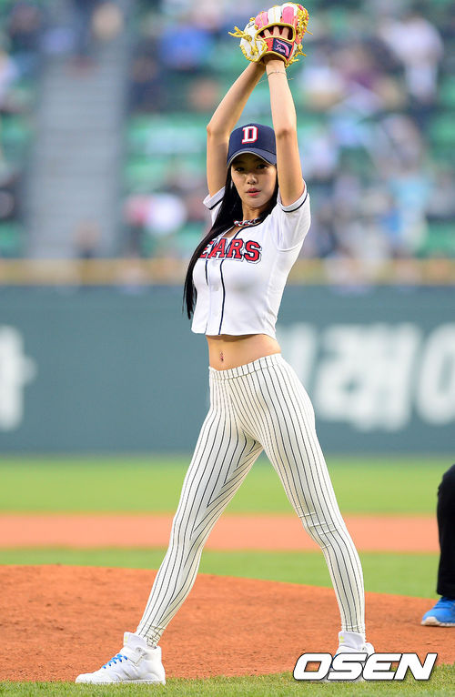 경기에 앞서 배우 클라라가 시구를 하고 있다. /sunday@osen.co.kr