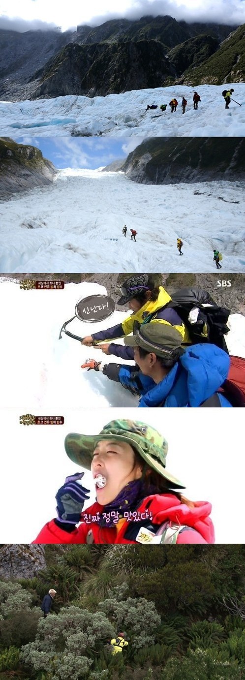이어 병만족은 쥐라기 숲을 떠나 또 다시 타임슬립했다. 거품 폭포와 웅장한 설산이 인상적인 빙하기로 간 것. 뉴질랜드 폭스 빙하의 만년설을 보고 신이 난 병만족은 어린아이처럼 좋아하며 고된 정글생활에서 벗어나 여유로운 시간을 보냈다. 특히 병만족은 즉석에서 빙하의 얼음을 채취, 초코시럽과 연유로 빙하빙수를 제조해 먹어 눈길을 끌었다. 박보영과 김병만 등 병만족의 얼굴에 천진난만한 미소가 번지는 순간이었다.
