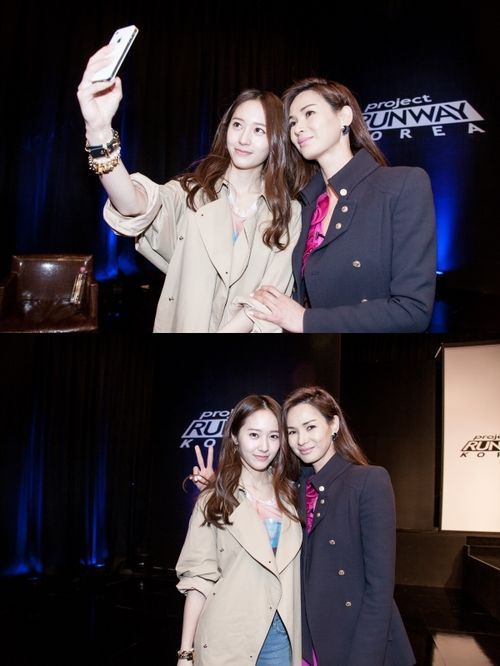 그룹 에프엑스의 크리스탈이 케이블 채널 온스타일 '프로젝트 런웨이 코리아 올스타'(이하 '프런코 올스타')의 진행자 이소라와 인증샷을 찍었다.