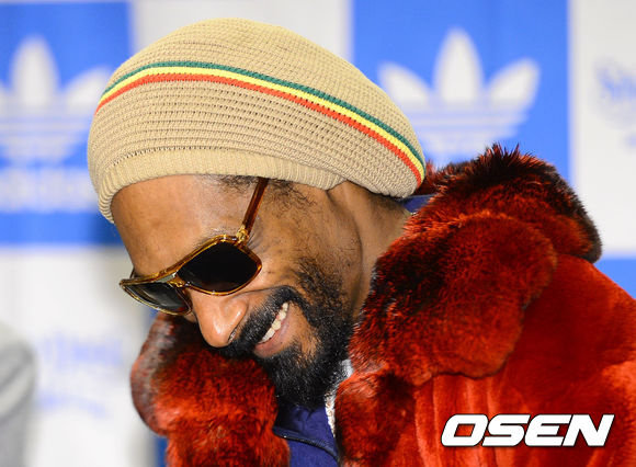 4일 오후 서울 리츠칼튼호텔에서 진행된 미국 힙합가수 스눕독(Snoop Dogg) 첫 내한 공연 '유나이트 올 오리지날스 스눕독 라이브 인 서울(Unite all originals Snoop Dogg live in seoul)' 기자회견에서 스눕독이 미소짓고 있다.