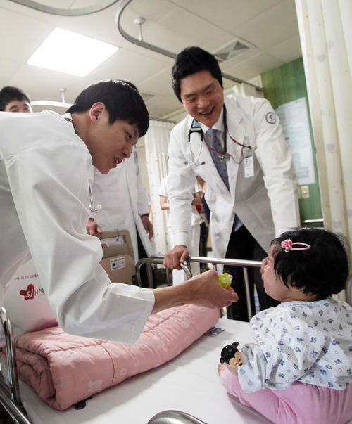 세종병원을 방문한 SK 코치 및 선수들은 ‘사랑나눔 하트행사’를 통해 무료 심장수술을 받게 된 김지연(가명, 14세), 이윤지(가명, 4세) 환자와 가족을 만나 위로와 격려의 말을 전했다.