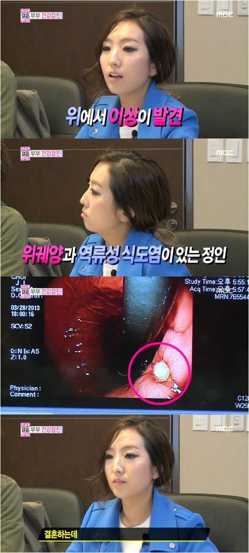 또한 의사는 “위궤양과 역류성 식도염이 있다”면서 “스트레스가 원인”이라고 진단했다. 하지만 그는 “결혼할 때 지장이 되는 건강 문제는 없다”고 큰 염려는 할 것이 없다고 우려를 불식시켰다.