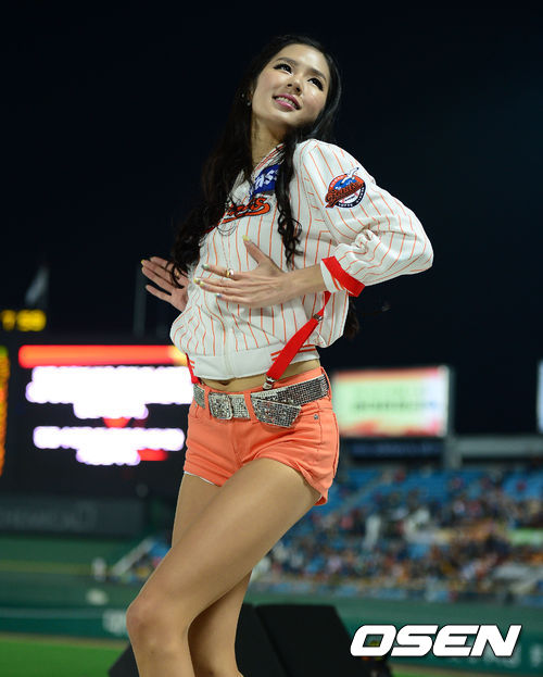 4일 오후 부산 사직구장에서 열린 롯데 자이언츠와 삼성 라이온스의 경기, 롯데 치어리더 박기량이 멋진 공연을 선보이고 있다.