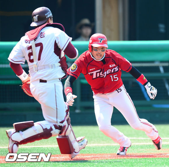 5일 오후 서울 목동야구장에서 열린 2013 한국야쿠르트 세븐프로야구 넥센 히어로즈와 KIA 타이거즈의 경기, 1회초 1사 주자 2,3루 나지완의 3루수 앞 땅볼때 3루 주자 이용규가 런다운에 걸리고 있다.