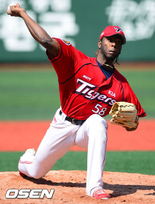 5일 오후 서울 목동야구장에서 열린 2013 한국야쿠르트 세븐프로야구 넥센 히어로즈와 KIA 타이거즈의 경기, KIA 선발 소사가 힘차게 공을 뿌리고 있다.