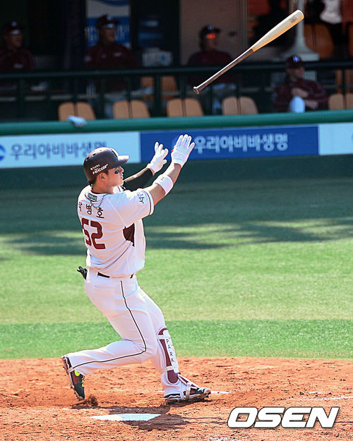5일 오후 서울 목동야구장에서 열린 2013 한국야쿠르트 세븐프로야구 넥센 히어로즈와 KIA 타이거즈의 경기, 3회말 1,3루 넥센 박병호가 좌월 역전 스리런 홈런을 날리고 있다.