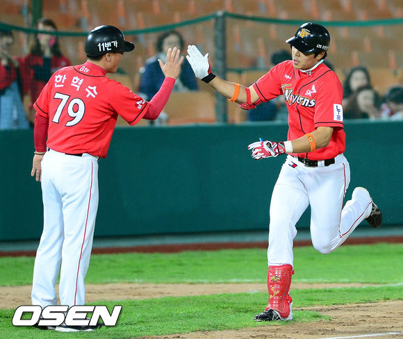 한동민은 5일 대전구장에서 열린 '2013 한국야쿠르트 세븐 프로야구' 한화와 원정경기에 4번타자 우익수로 선발출장, 5회초 우중월 담장을 넘아가는 만루 홈런을 터뜨렸다. 지난달 24일 사직 롯데전 이후 7경기 만에 터진 시즌 3호이자 데뷔 첫 만루 홈런.