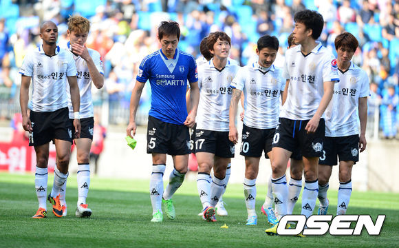 경기후 패배한 인천 선수들이 아쉬운 표정으로 그라운드를 나서고 있다./jpnews@osen.co.kr