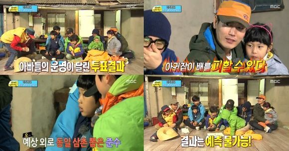 투표 결과 김민국 외에 이준수는 아빠 이종혁, 성동일을 뽑았으며 송지아는 아빠 송종국과 윤민수, 윤후는 아빠 윤민수와 성동일을, 성준은 아빠 성동일과 윤민수를 지목했다. 동맹을 맺은 윤후, 성준의 한 표씩이 무효처리된 가운데 윤민수가 1위에 올랐다. 김성주는 0표 굴욕을 맛봤다.