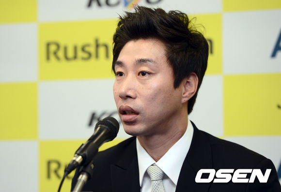 6일 오전 서울 강남구 역삼동 러시앤캐시 본사사옥에서 진행된 러시앤캐시 '남자 프로배구단 창단 및 김세진 감독 선임' 기자회견에서 러시앤캐시 김세진 감독이 인사말을 하고 있다.