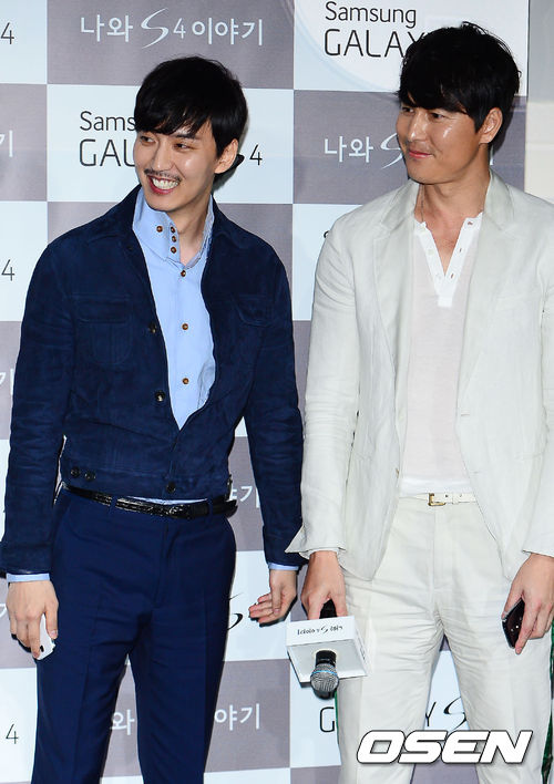 6일 오전 서울 강남구 CGV 청담씨네시티에서 열린 ‘나와 S4이야기_첫번째’ 시사회 행사에서 김남길과 정우성이 미소짓고 있다.