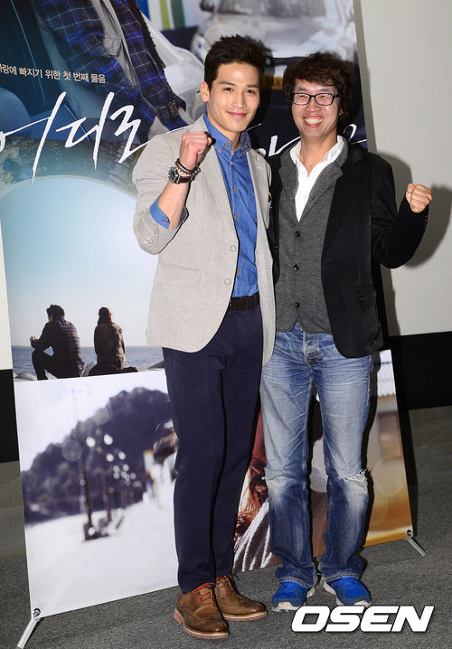 6일 오후 서울 태평로 스폰지하우스 광화문에서 열린 영화 '어디로 갈까요?' 언론배급시사회에서 유건과 진승현 감독이 포토타임을 갖고 있다.