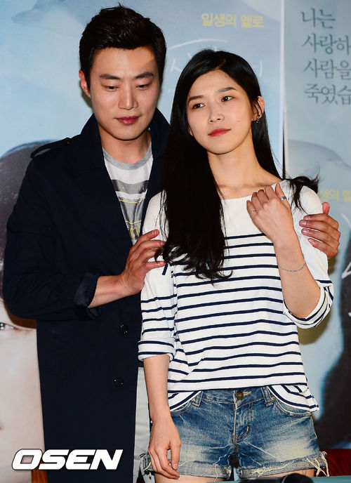 시사회를 마치고 열린 기자간담회에서 이희준이 강진아 감독의 위치를 바꾸고 있다.