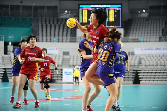 인천체육회가 컬러풀 대구를 한 점 차로 꺾고 여자부 선두로 올라섰다.