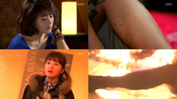 '직장의 신'에서는 미스김의 회상신을 통해 당시 상황이 그렸다. 미스김은 불이 난 회사 사무실에 쓰러져 있는 회사 선배를 구하러 들어갔다 쓰러진 불기둥에 다리가 닿는 사고를 당했다.