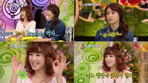 이에 MC들은 "살을 뺀 모습도 예쁘고 살 빼기 전 모습도 예쁘다"며 "그냥 쪘다 뺐다 해요"라고 마무리를 해 시청자들의 폭소를 자아냈으며 송지은 또한 "데뷔 전 돼지 같다는 헬스 트레이너의 말에 충격 받아 2주 만에 10kg 넘게 살을 뺀 적이 있다고 밝혔다.