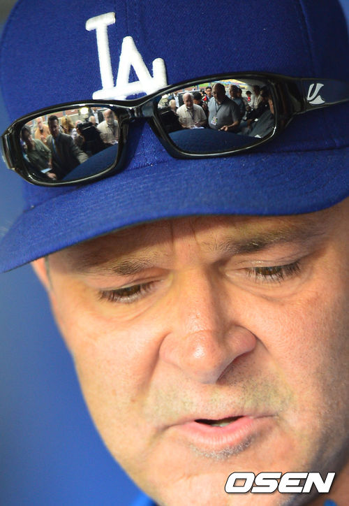 7일(이하 한국시간) 미국 캘리포니아 로스앤젤레스 다저스타디움에서 열리는 '2013 메이저리그' LA 다저스와 애리조나 다이아몬드백스 경기를 앞두고 다저스 돈 매팅리 감독이 취재진의 질문에 답하고 있다.