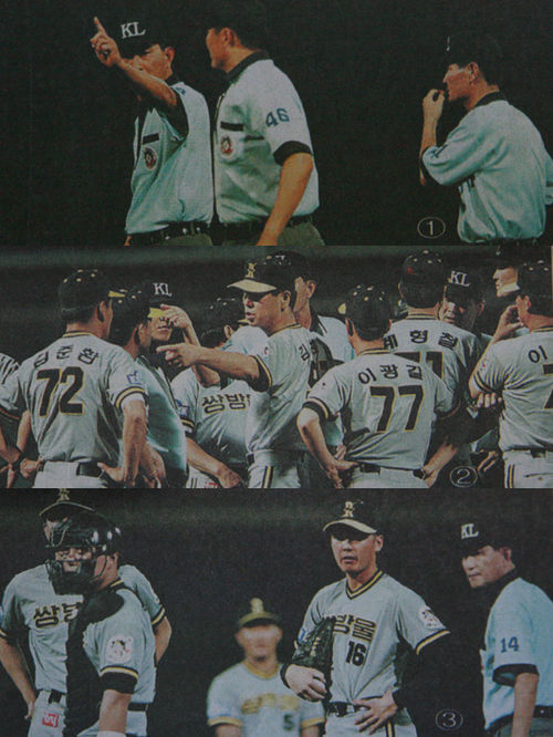 상대적 약자인 쌍방울을 이끌고 있는 김성근 감독의 피해의식, 사사건건 물고 늘어지는 김성근 감독에 대한 불쾌감을 드러낸 김재박 감독, 심판의 어정쩡한 판정 태도 등이 한데 버무러져 빚어낸 사건의 앞과 뒤를 살펴보자.