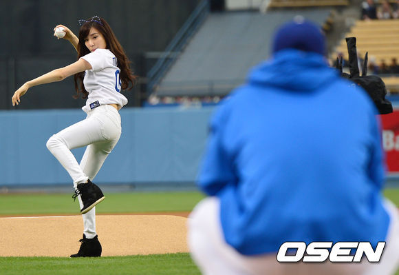 그룹 소녀시대의 티파니가 다저스타디움의 마운드에 섰다. 비록 시구는 깔끔하게(?) 이뤄지지 않았지만 다저스타디움의 팬들은 웃음으로 감싸 안았다. 모두에게 유쾌한 시간이었다.