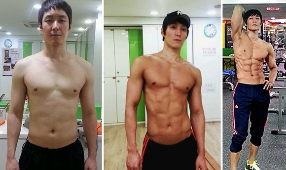 사진 속 심형탁은 운동 전후의 모습이 확연히 다르다. 군살 없는 몸매에 탄탄한 초콜릿 복근이 눈길을 끈다. 소속사에 따르면 심형탁은 4개월 동안 술과 담배를 끊고 식단조절을 통해 복근을 만들었다.