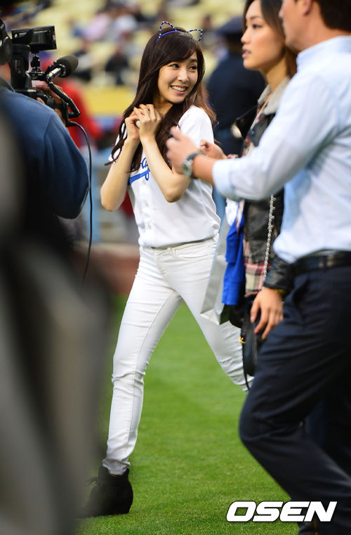 7일(이하 한국시간) 미국 캘리포니아 로스앤젤레스 다저스타디움에서 '2013 메이저리그' LA 다저스와 애리조나 다이아몬드백스 경기가 열렸다. 시구자로 나선 걸그룹 소녀시대의 티파니가 그라운드를 향해 발걸음을 옮기고 있다.