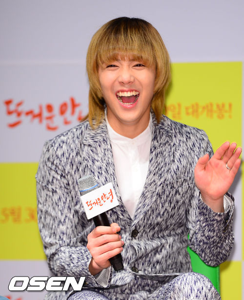 7일 오전 서울 광진구 롯데시네마 건대입구에서 열린 영화 ‘뜨거운 안녕’(감독 남택수) 제작발표회에서 이홍기가 환하게 웃고 있다.