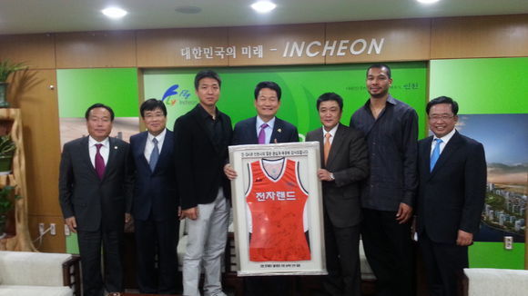 전자랜드 선수단은 6일 오후 2시 인천시청을 방문해 송영길 인천시장을 만났다. 2012~2013 시즌 종료 후 인사 차원에서 이뤄진 미팅이었다. 이날 미팅에는 전자랜드 이익수 단장, 유도훈 감독을 비롯해 문태종, 신임주장 이현호 등이 참석했다.
