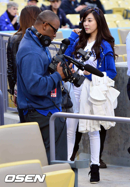 시구자로 나선 걸그룹 소녀시대의 티파니가 방송인터뷰를 준비하고 있다.