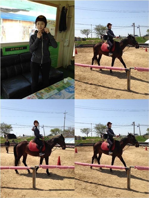 배우 박수진의 승마 연습 현장 사진이 공개됐다.
